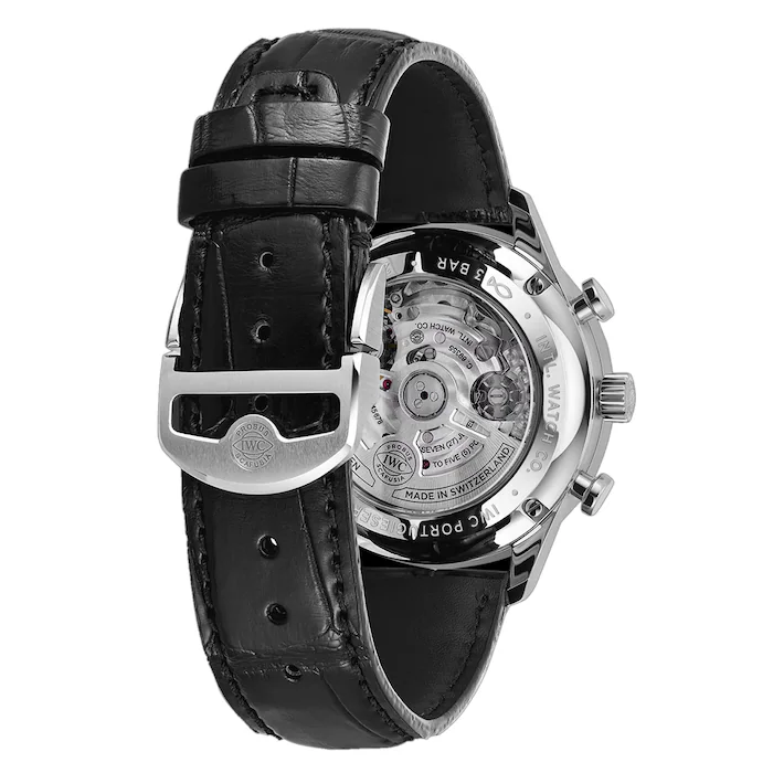 Boasting clean, bold aesthetics on an open dial, with vertically arranged totalizers, this model benefits from a compact 41mm case diameter, housing a powerful IWC-manufactured 69355 calibre movement for expert timekeeping.